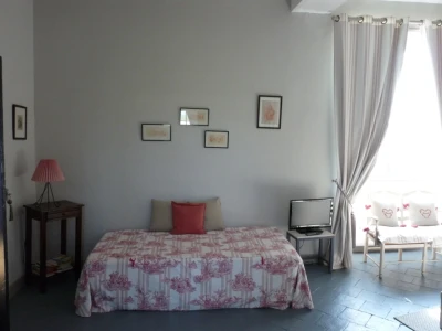 *LA TREILLE: Située au 1er étage de la maison, 40m², très lumineuse, elle bénéficie d’un double ensoleillement, avec vue sur les deux jardins et la piscine. coin salon.