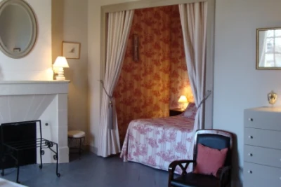 *LA ROSERAIE ROUGE: La Roseraie Rouge est située au 2éme étage de la maison. Un lit double « Queen Size » est placé sous la magnifique poutraison. toilettes séparées.