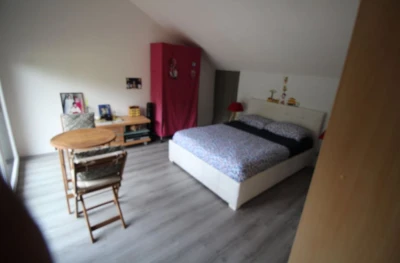 À l'étage : 2 chambres dont 1 avec 1 lit de 140 et 1 de 90 et l'autre avec 1 lit de 140. 1 lit de bébé mis à disposition. Terrasse ouverte sur tout l'étage. Vue imprenable sur la forêt.