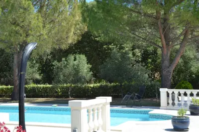 Un bel espace piscine avec douche solaire, plage piscine de 60 m², pelouse et bains de soleil, piscine privée (10 x 5, Profondeur 120/170), ouverte de mi mai à fin septembre, alarme piscine pour la sécurité. Le parking mis à disposition est privé.