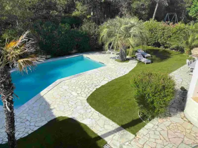 Piscine chauffée pour en profiter toute l’année. Pompe à chaleur pour le chauffage et la piscine.