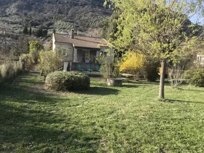 Villa cosy et très lumineuse, entourée de verdure, quartier calme et cadre reposant, vue sur les montagnes des Baronnies. Grande cuisine toute équipée, salon avec canapé très confortable et cheminée insert, terrasse avec vue et barbecue, pas de voisin proche, mais à 2 pas du village (boulangerie, épicerie, café - restaurants...). Très grand jardin clôturé, avec piscine privée, et clôturée, trampoline géant et balançoire. Rivière à deux pas du gîte. Randonnées au départ du gîte dans les montagnes des Baronnies Provençales, où nichent les Vautours Fauves. A 30 mn de Vaison-la-Romaine, Grignan, 1h d'Avignon et Montélimar. Visible sur Air.b.n.b (Gîte les 5 sens à Sahune) Tarifs : me contacter
