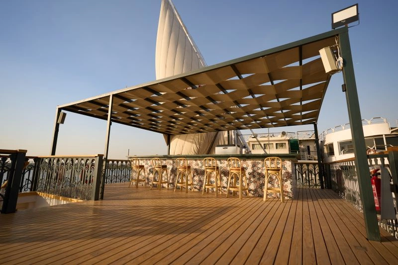 Flambant neuf (2023), la Dahabeya Nile Majestic est un bateau de croisière traditionnel disposant de 16 cabines. Il se compose de 3 ponts :