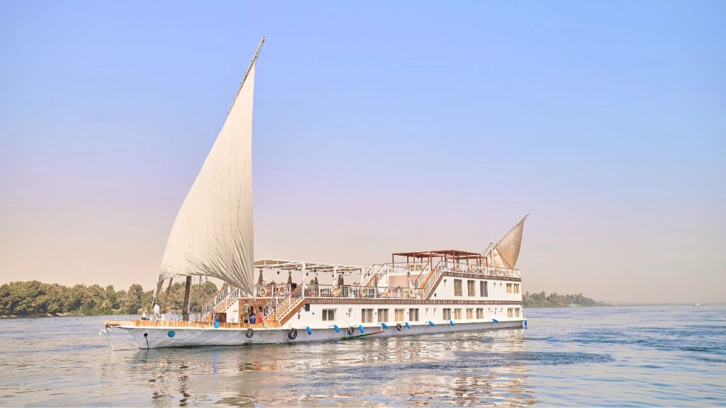 En fonction de la météo et du vent, il est possible que votre dahabyia ait besoin d'être remorqué par un autre bateau sur une certaine distance. Veuillez noter que les conditions de navigation peuvent également modifier l'horaire ou l'ordre des visites.