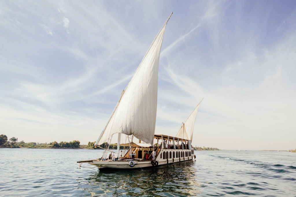 En fonction de la météo et du vent, il est possible que votre dahabyia ait besoin d'être remorqué par un autre bateau sur une certaine distance. Veuillez noter que les conditions de navigation peuvent également modifier l'horaire ou l'ordre des visites.