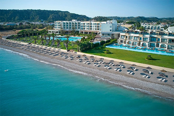 En bord de mer, au coeur de la station animée d'Ixia, à seulement 6 km de la ville médiévale de Rhodes et à 7 km de l'aéroport international. Ce complexe 5 étoiles réservé aux adultes propose un cadre élégant et paisible, avec un bâtiment principal et des suites réparties dans de superbes jardins bien entretenus. Avec un accès direct à une plage privée équipée, plusieurs piscines, un spa complet et une offre gastronomique variée, c'est un lieu idéal pour un séjour en couple ou entre amis, alliant confort, détente et raffinement, tout en étant proche des richesses culturelles et naturelles de l'île.
