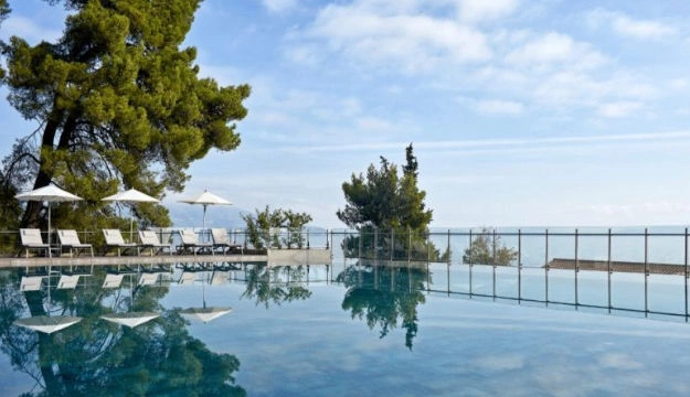 Le Kontokali Bay Resort & Spa dispose d'un emplacement idéal sur le rivage oriental de l'île émeraude grecque de Corfou. Ce grand complexe récompensé de l'écolabel La Clef Verte se situe au bord d'une plage de sable, entouré d'un magnifique jardin méditerranéen d'oliviers, de pins et de plantes tropicales.