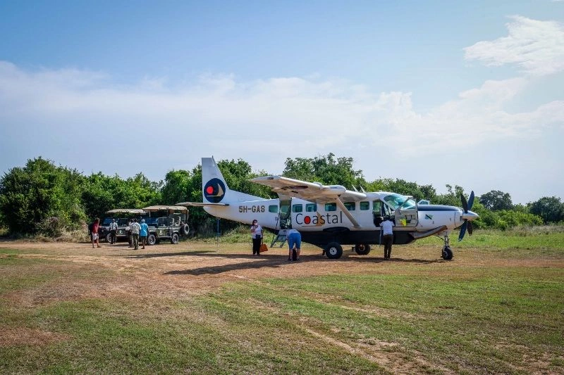 Dans l'après-midi, prise en charge depuis votre hôtel et transfert à l'aéroport pour prendre votre vol en direction du Parc National de Saadani.