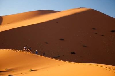Une des meilleures façons de découvrir le désert est de partir en excursion à dos de chameau, à la manière des anciens nomades. Vous pouvez passer la nuit dans un bivouac sous les étoiles, dans un campement berbère, et profiter d’un dîner traditionnel autour d’un feu de camp, accompagné de musique et de contes locaux.