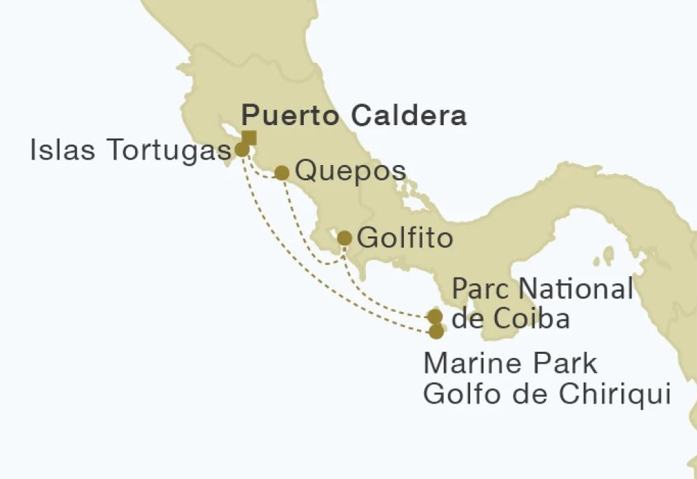 De Quepos à Golfito, des trésors sauvages du parc national de Coiba aux eaux cristallines du Golfo de Chiriquí, jusqu’aux idylliques Islas Tortugas, l’itinéraire dévoile une succession de paysages préservés, entre jungle luxuriante, plages désertes et biodiversité exceptionnelle.