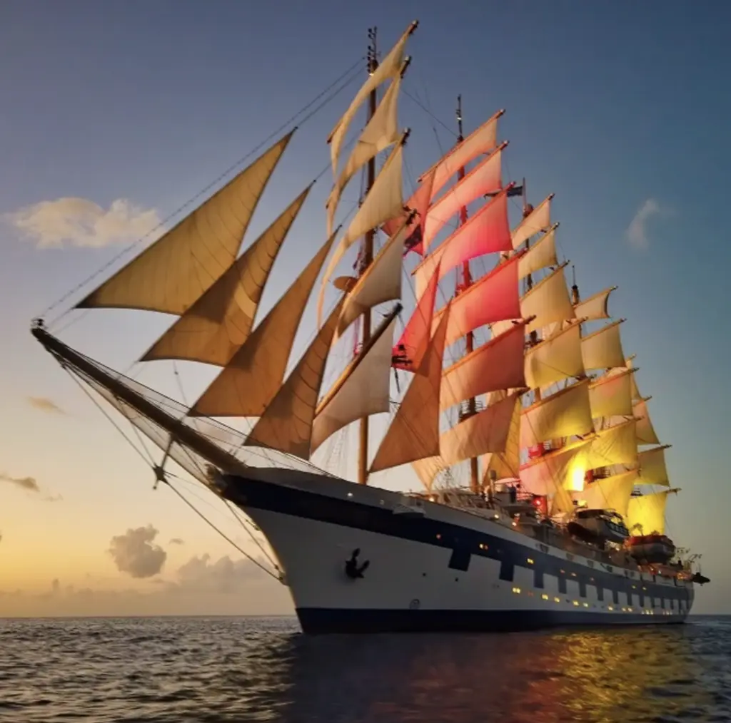 Embarquer à bord du Royal Clipper, c’est choisir de voyager autrement. Cinq mâts dressés vers le ciel, des voiles qui se déploient dans le silence du vent, et la Méditerranée pour horizon. Depuis Nice, la lumière azuréenne accompagne vos premiers pas à bord avant que le voilier ne glisse vers les rivages italiens.